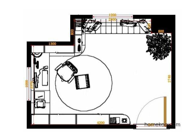 利用隔断把客厅分为休闲区和会客区,两个空间相互贯通,给人一种隔而不断又很通透的感觉。